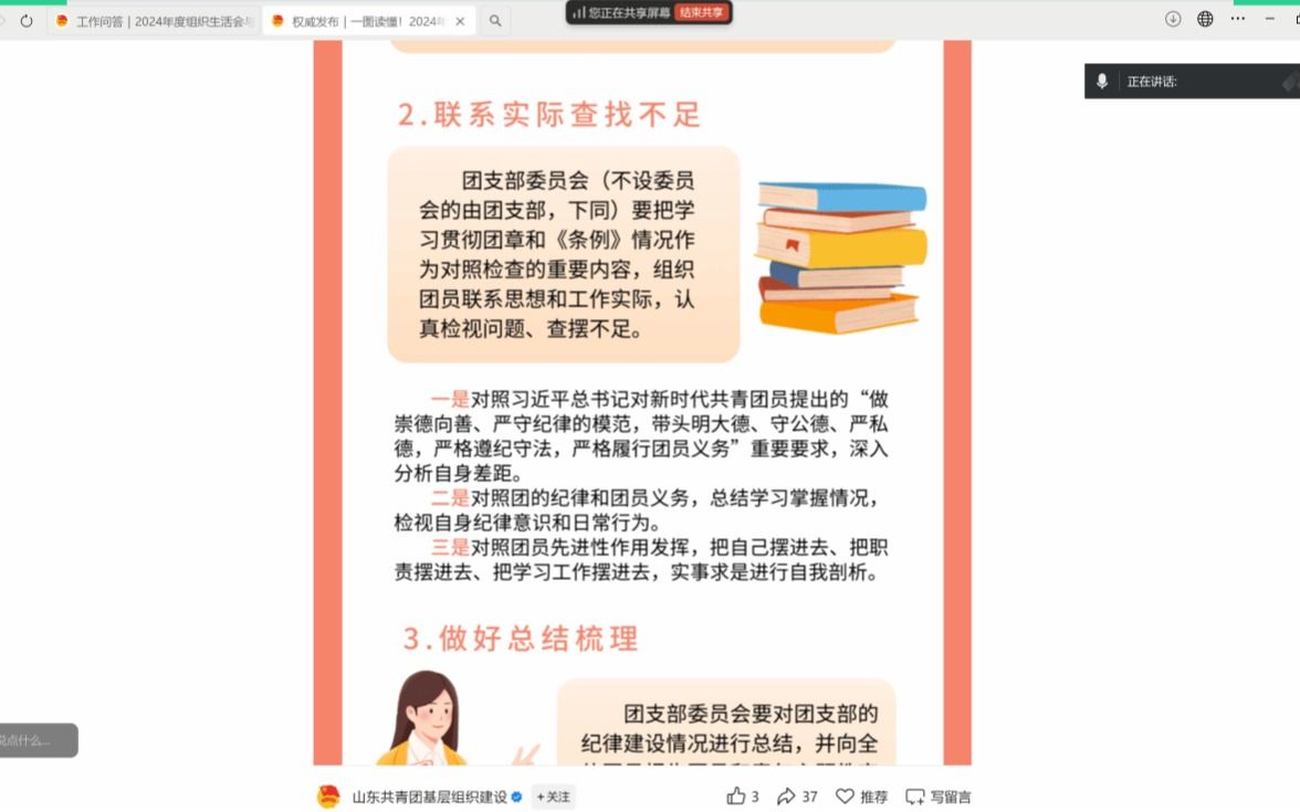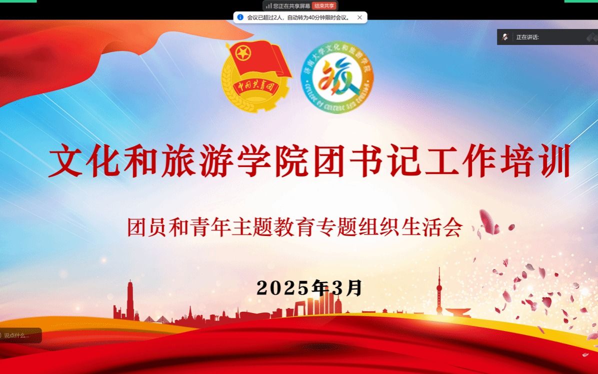 关于指导基层团支部召开2024年度组织生活会和开展团员教育评议的工作提示》(以下简称《工作提示》),结合示范性组织生活会,于2025年3月3日组织全体团支部书记开展线上组织生活会工作培训,明确组织生活会基本要求和注意事项。会议由聂安琪同学主持,学院全体团支书参加会议。