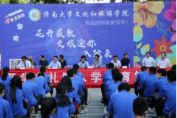 文旅学院2020届新生开学典礼暨开学第一课在舜耕校区篮球场隆重举行,文旅学院党委书记朱海涛,院长刘建波,党委副书记、副院长孙成政,副院长张炳文,副院长张博出席开学典礼,学院办公室、教学办、学办、团委、各系主任和部分教师及全体2020届新生参加开学典礼。典礼由学院党委副书记、副院长孙成政主持。