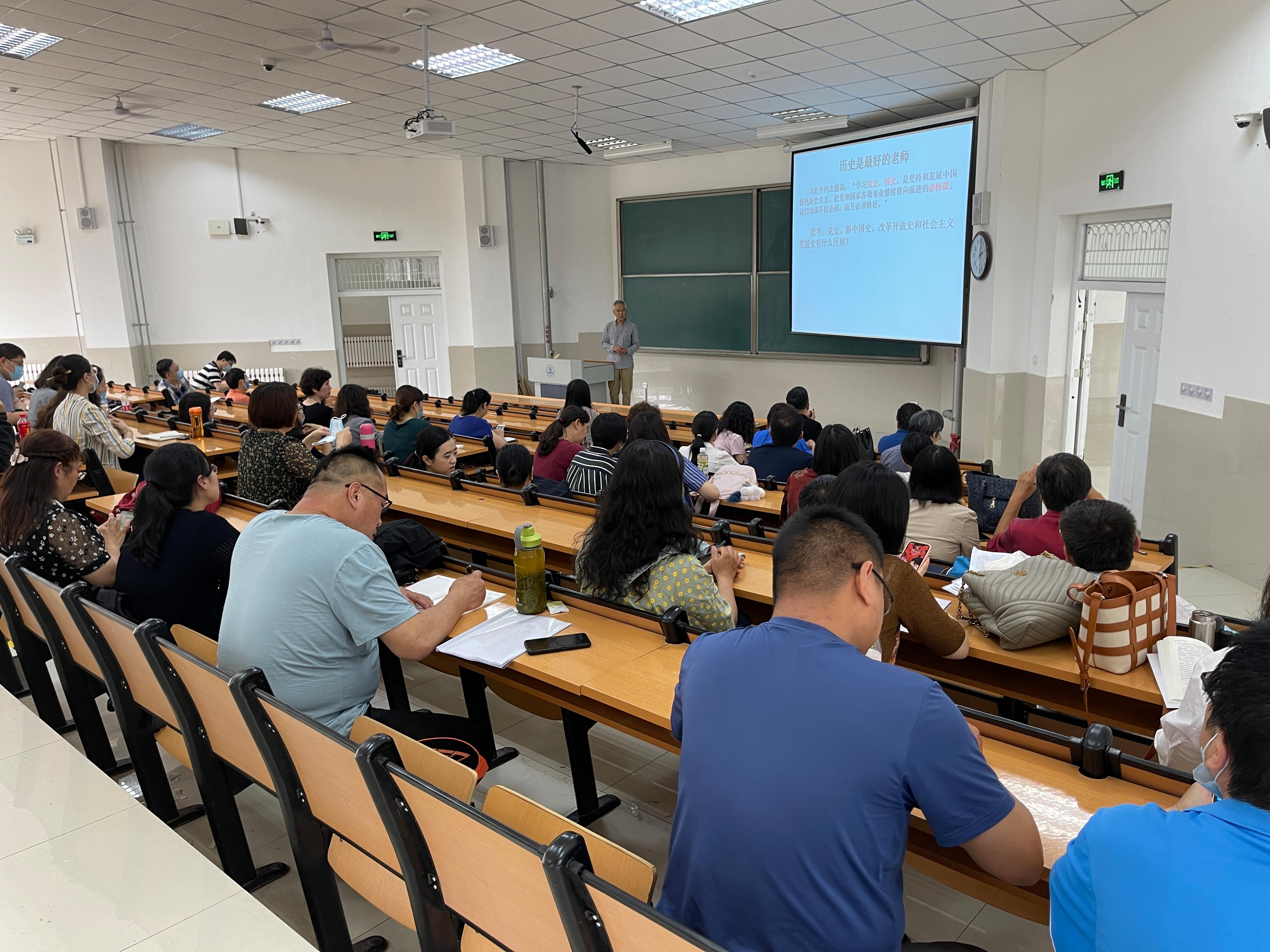 根据学校党史学习教育工作的总体要求,落实“七个一”活动具体安排,于6月1日在舜耕校区第三教学楼101教室组织开展党史学习专题党课活动。党课由学院党委副书记孙成政主持,历史系主任高臻主讲,学院教工党员全员参加。