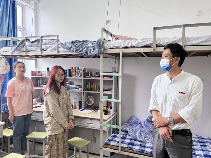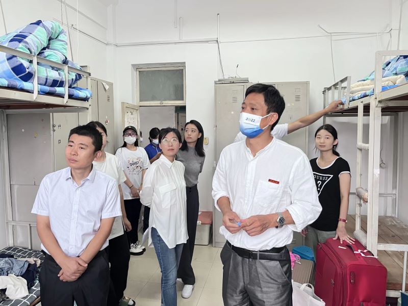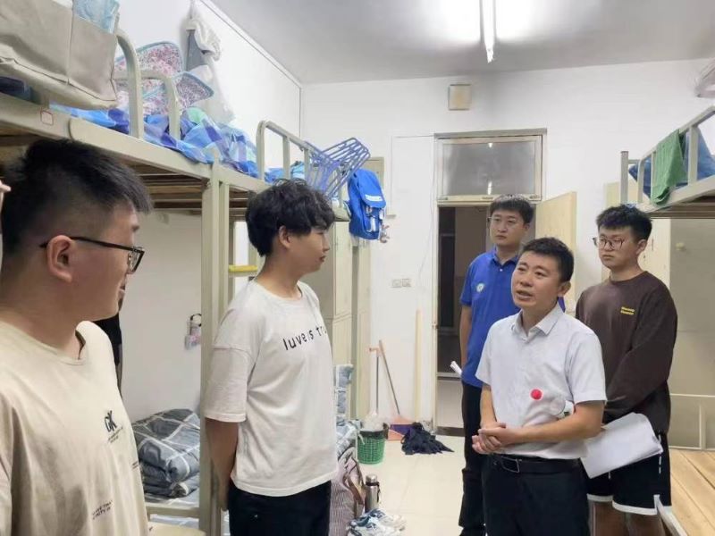 2022级新生到校后的住宿和生活情况,帮助同学们尽快适应新生活、新环境,9月20日,学院党委书记孟德洋、党委副书记王磊带领辅导员走访新生宿舍,为新生送去学院的温暖与关怀。