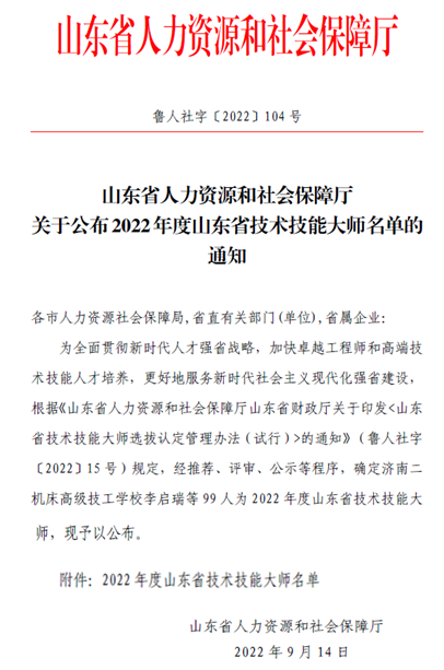 近日,山东省人力资源和社会保障厅发布了《关于公布2022 年度山东省技术技能大师名单的通知》,禁漫天堂