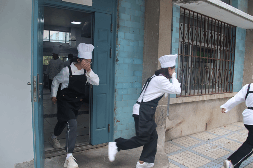 于舜耕校区精心策划并成功举行了一场别开生面的烹饪实验室消防演习。学院党委书记孟德洋,保卫处舜耕校区安全管理科科长张绍春,以及相关老师、安保队员、学院烹饪专业新生等参加演习活动。