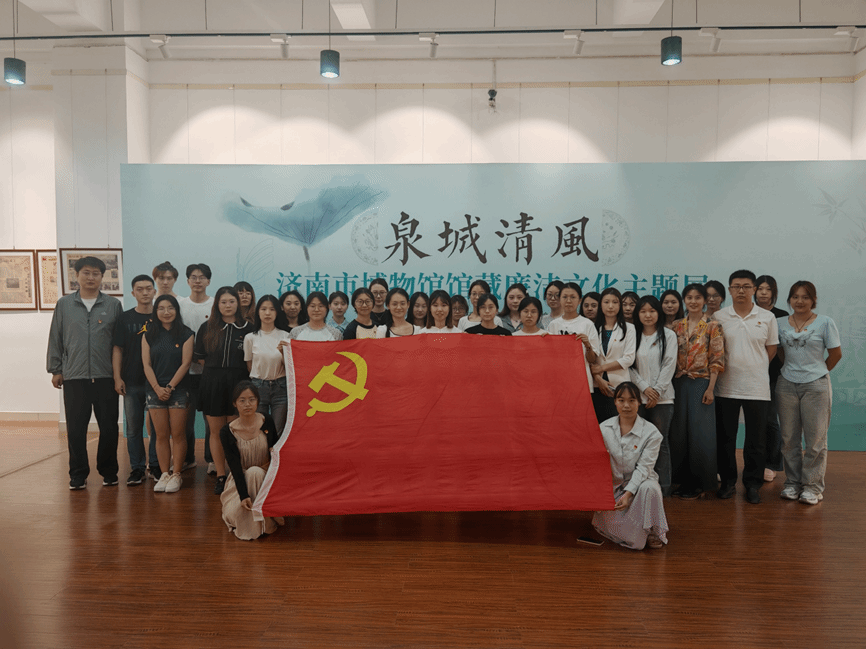 在舜道艺术馆开展党纪学习教育主题党日活动,学院党委副书记信苏珊、团委书记吕龙飞、辅导员赵军、毕业生党员、党员发展对象、入党积极分子代表共同参观《泉城清风——济南市博物馆馆藏廉洁文化主题展》。