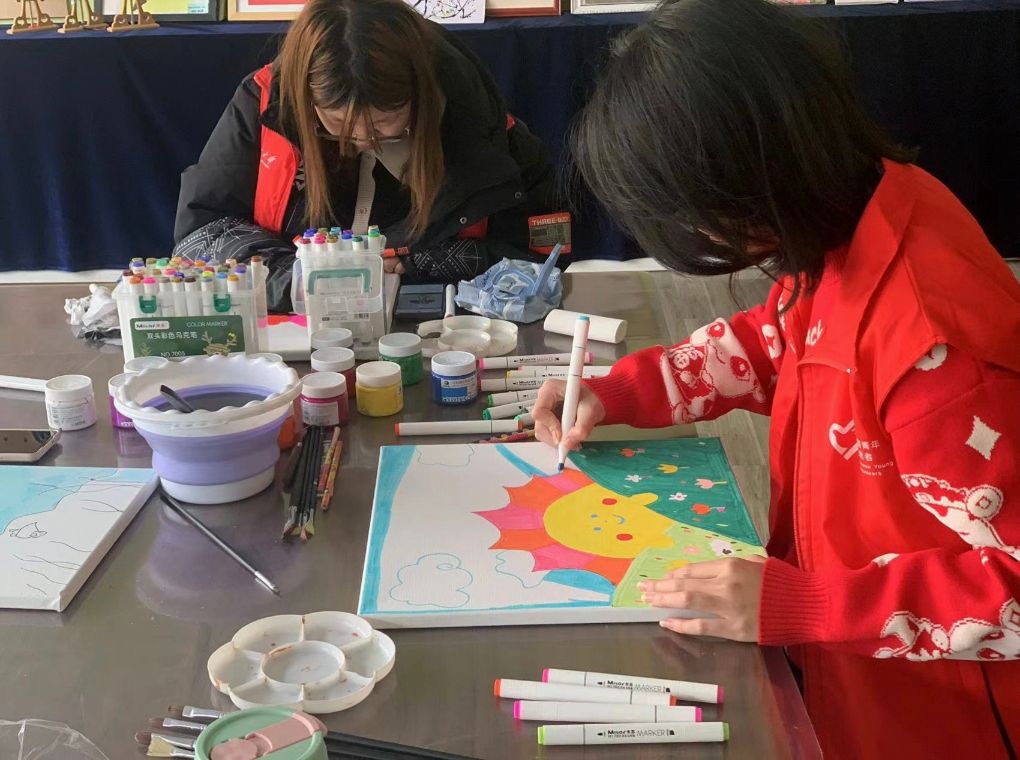 志愿者们为孤独症儿童绘画,每一笔色彩,都像是孩子们内心世界的一扇窗户,在绘画过程中,志愿者们充分尊重每个孩子的独特想法,积极鼓励他们发挥想象力。通过这样的方式,他们在表达自我的同时,也感受到了来自外界的关爱和温暖。