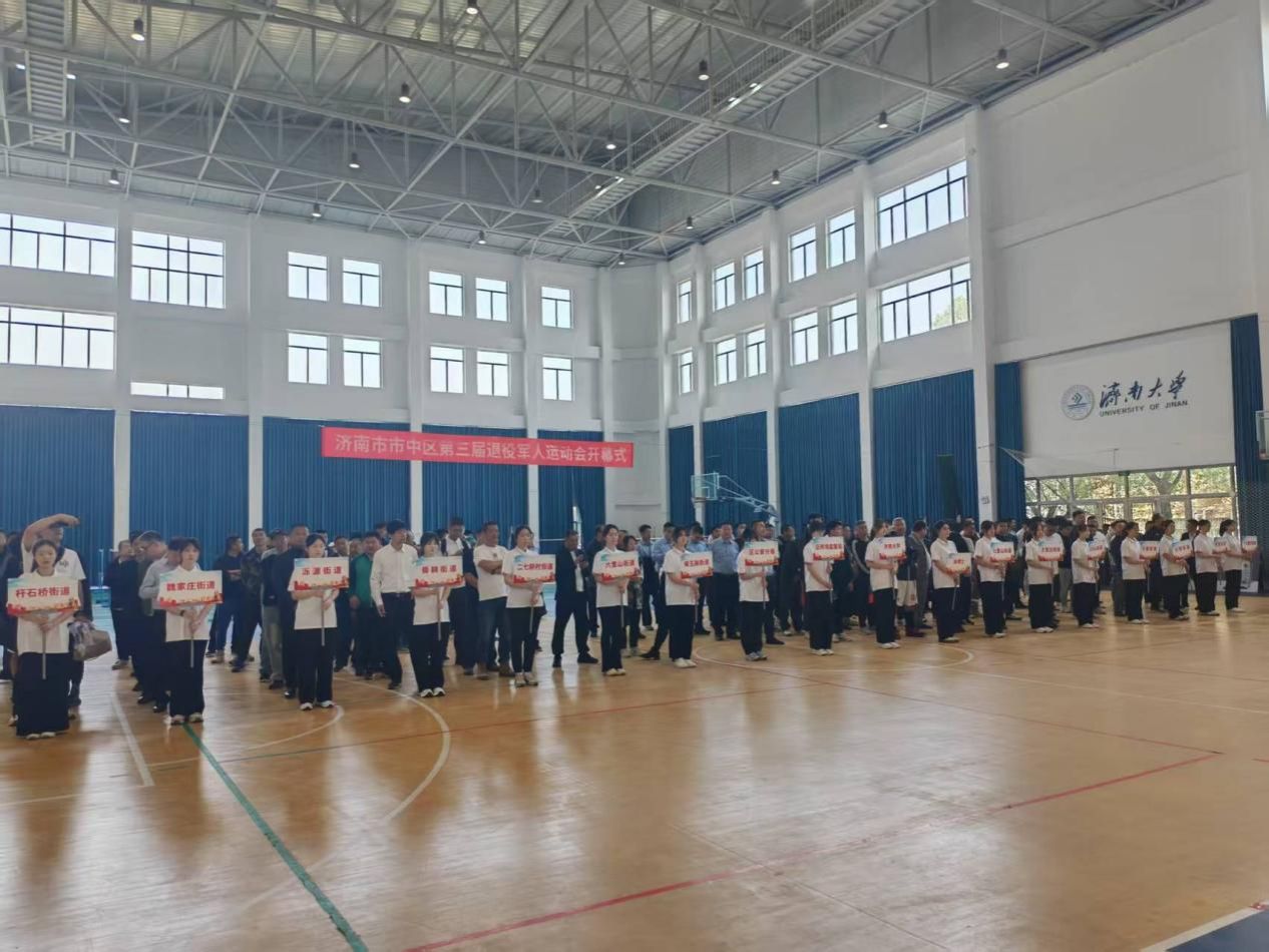 本次运动会由市中区退役军人事务部主办,旨在弘扬退役军人“退役不褪色”的精神风貌,搭建交流平台,丰富退役军人精神文化生活。作为运动会的重要环节,开幕式承载着凝聚士气、激发热情的重要使命,现场汇聚了来自市中区各街道、各行业的退役军人代表,他们身着整齐服装,满怀期待迎接这场属于自己的盛会。