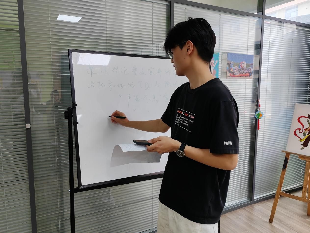7月7日,在社区走访中,队员们还发现了更多“民间智慧”:有青年用漫画形式画社区里的“孝老爱亲故事”,有大学生返乡创业团队用“剧本杀”设计乡村旅游路线介绍。2024级旅游管理专业的黄新月感慨:“这些青年他们没有刻意‘说教’,却让我们真切感受到了乡村振兴的活力,这就是青年话语的力量。” 在7月10日的团队例会上,队员们围绕“内容、渠道、主体”三个维度展开头脑风暴。经过3个小时的讨论,最终队员们达成一致:青年话语内容上应以“故事化+情感化”为主,渠道上以短视频平台为核心,主体上联动青年创作者形成传播矩阵。此外,团队在讨论中达成共识:“要注意平衡‘年轻化’和‘严肃性’,不能为了追热梗而偏离主流价值”。每一个创意都扎根于前期调研的“真实土壤”,让主流价值的表达既有青年味,又不失深度。