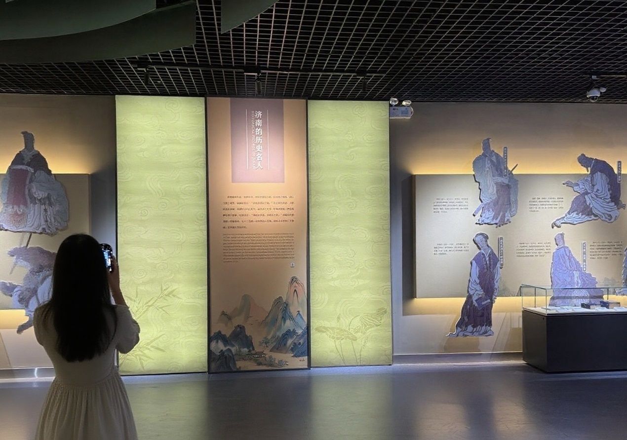 阅读角的长桌前,一场跨越时空的典籍共读正在进行。队员们站在导览墙前,带领大家逐字欣赏济南著名诗人李清照、辛弃疾的选段。遇到晦涩处,便用生活化的例子解读;读到精彩处,就一起讨论其中的智慧。有小朋友指着插图里的古人服饰发问,有老人分享自己对经典名句的理解。书香萦绕间,古籍里的文字仿佛活了过来,让文化的种子在交流中生根。