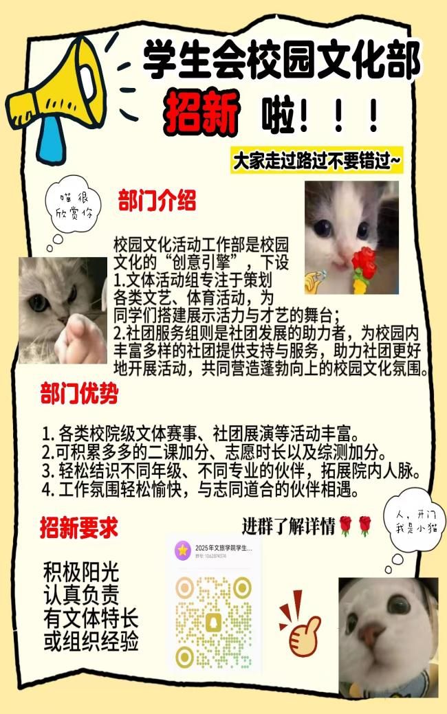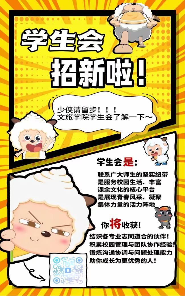 学生会,报名表、部门咨询及其他招新事宜请进入文旅学院学生会纳新群:1062874374,进群请备注班级姓名哦。