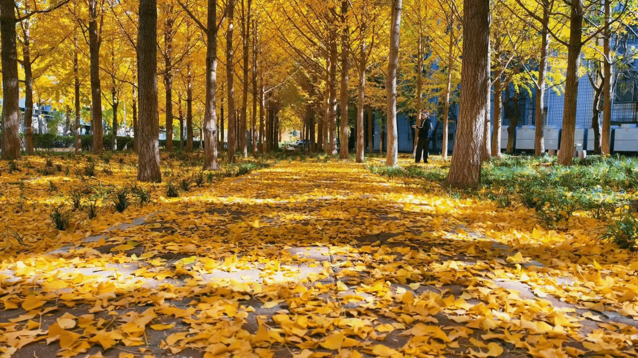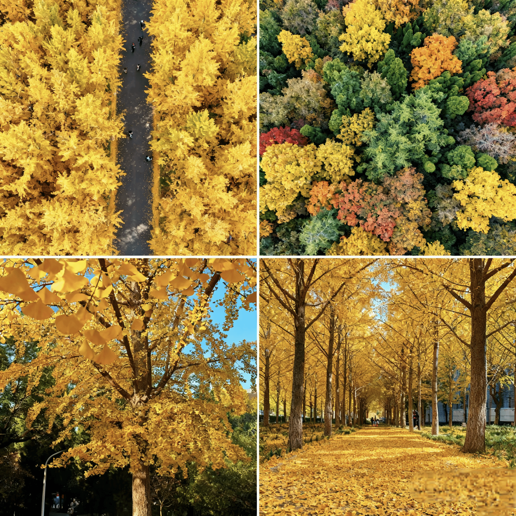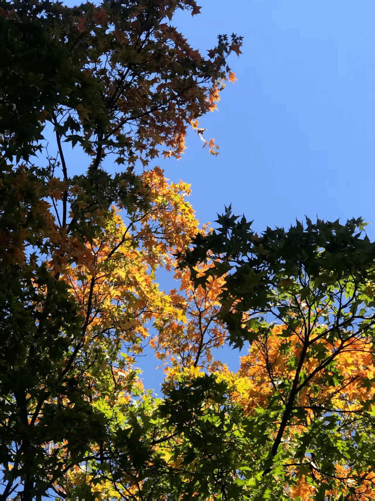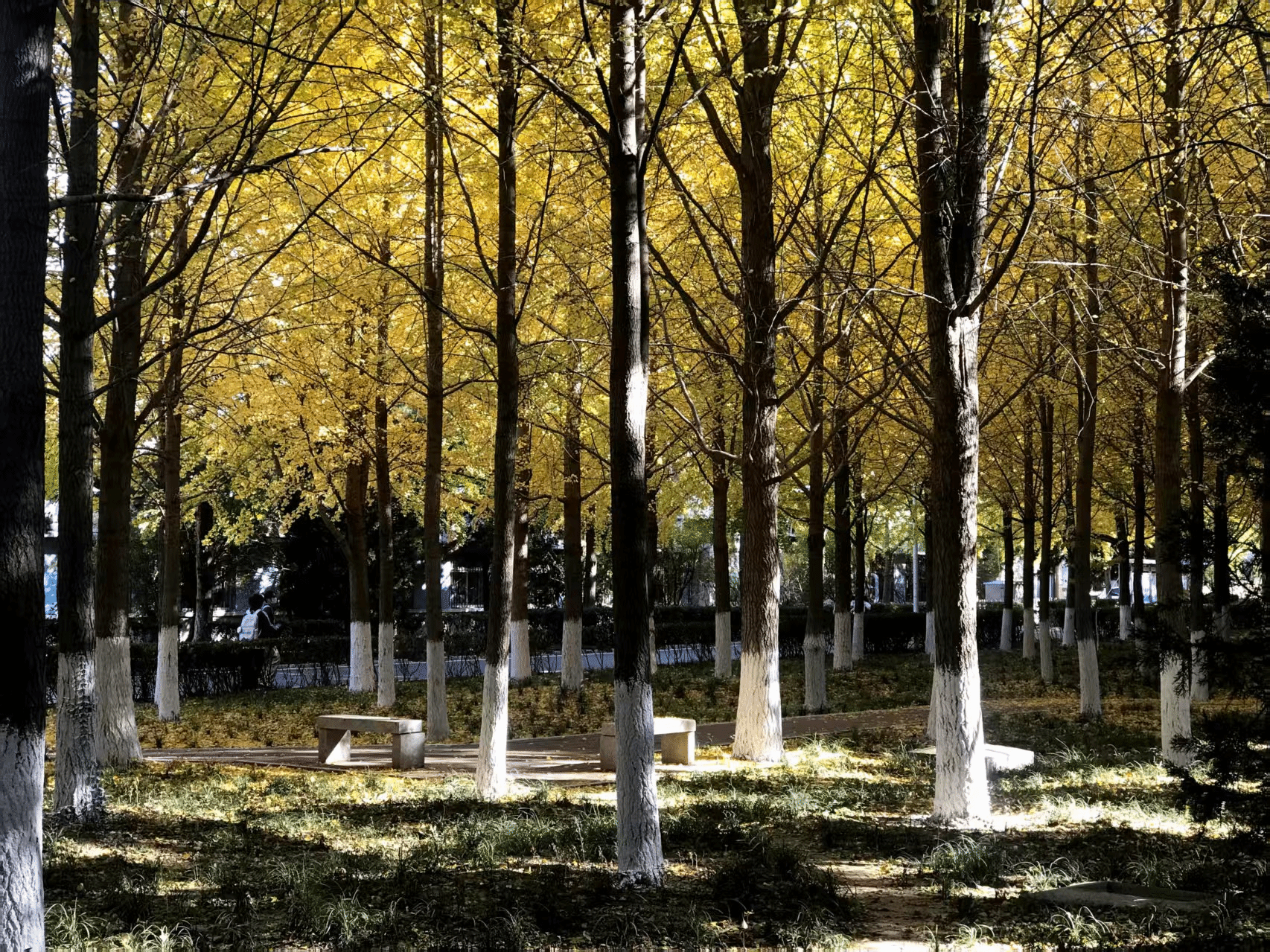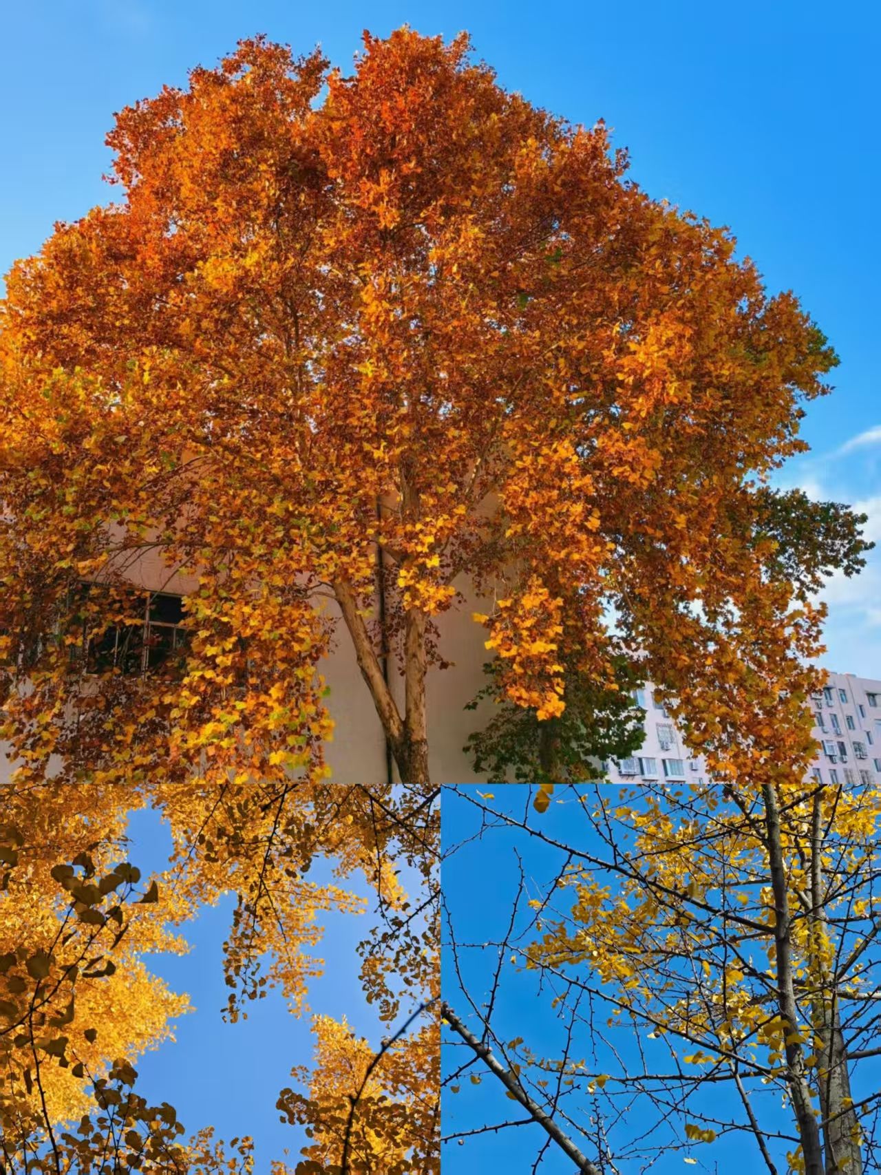 每一步都踩着秋的韵律仰观苍穹,蓝黄交织