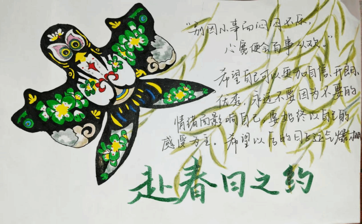 本次活动紧扣“追思”与“新生”两大核心主题,摒弃传统说教式教育,创新性地将清明民俗与心理疗愈相结合,特别设置“追思手札”、“青柳纸鸢”两大沉浸式创作环节,为同学们打造温柔的情感出口。在追思手札创作中,同学们提笔抒怀,或是写下对逝去亲人的深切思念,或是追忆先辈英烈的家国情怀,亦或是留下对春日的美好期许、对未来的自我勉励,一字一句皆是真情流露。在青柳纸鸢制作环节,大家以彩笔绘纸鸢,将心中烦恼、压力写于鸢身,伴着春日清风放飞心愿,寓意卸下负面情绪,拥抱崭新生活,在动手创作中实现与自我的和解,收获内心的平静与力量。