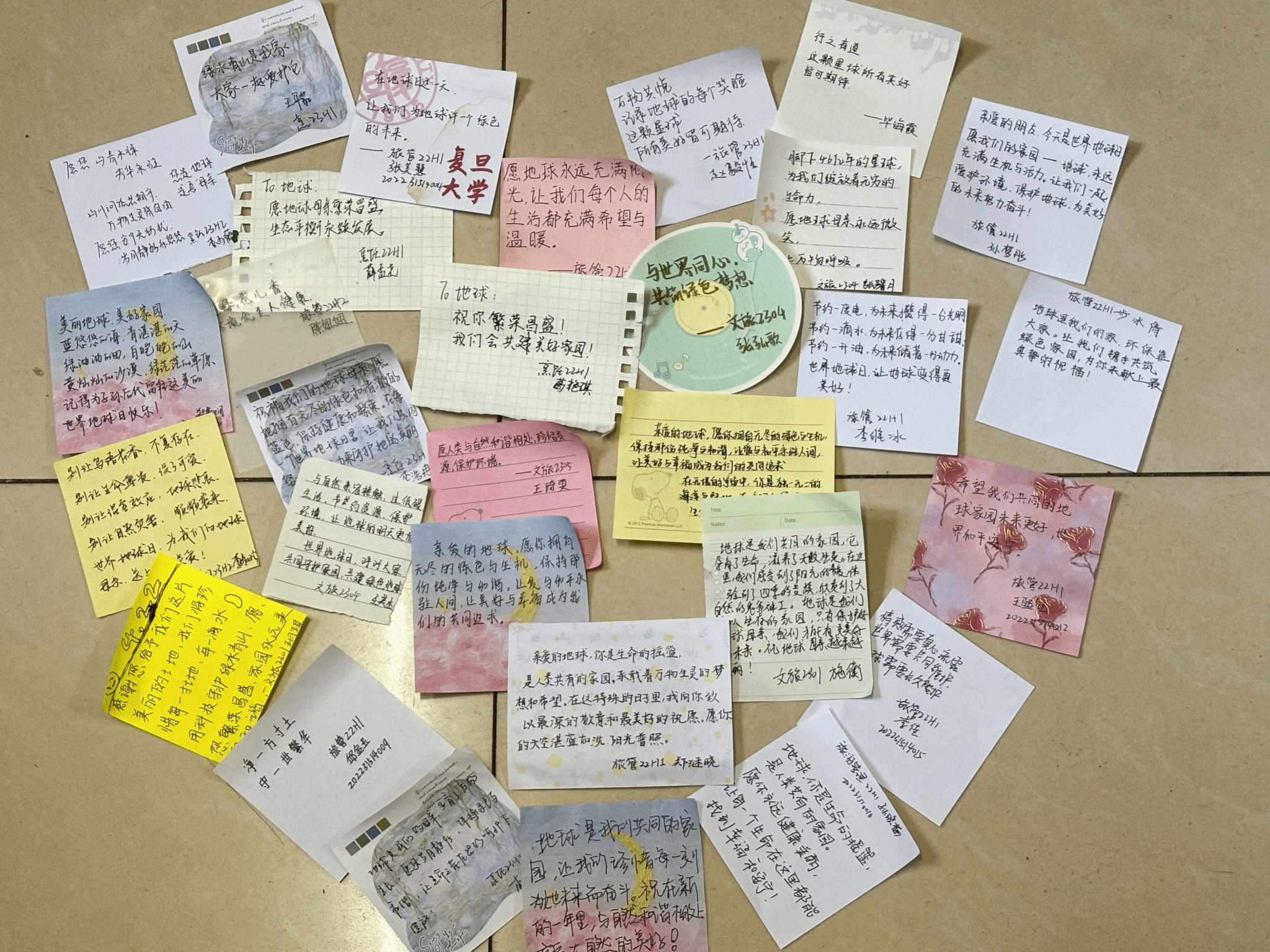 活动期间,志愿者为同学们科普绿色环保知识,积极引导同学们树立“人与自然和谐共生”的理念,呼吁同学们更加珍视地球资源与环境,积极践行绿色、环保、低碳的生活模式,用实际行动保护地球生态。同学们也积极响应号召,纷纷上传自己绿色出行、节能减排、保护环境的照片,分享自己的环保经验与心得,在便利贴上写下对地球的祝福。