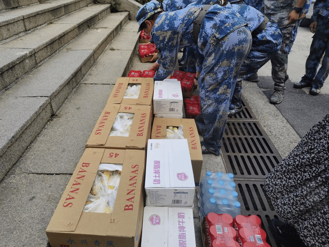 99届优秀校友翟川、15届优秀校友阎晓彤为正在烈日下刻苦训练的新生们送上了清凉的水果、饮品、矿泉水等物资。他们心系母校,关心学弟学妹们的成长,以实际行动感恩学院的栽培,以此方式给予新生亲切问候与祝福。
