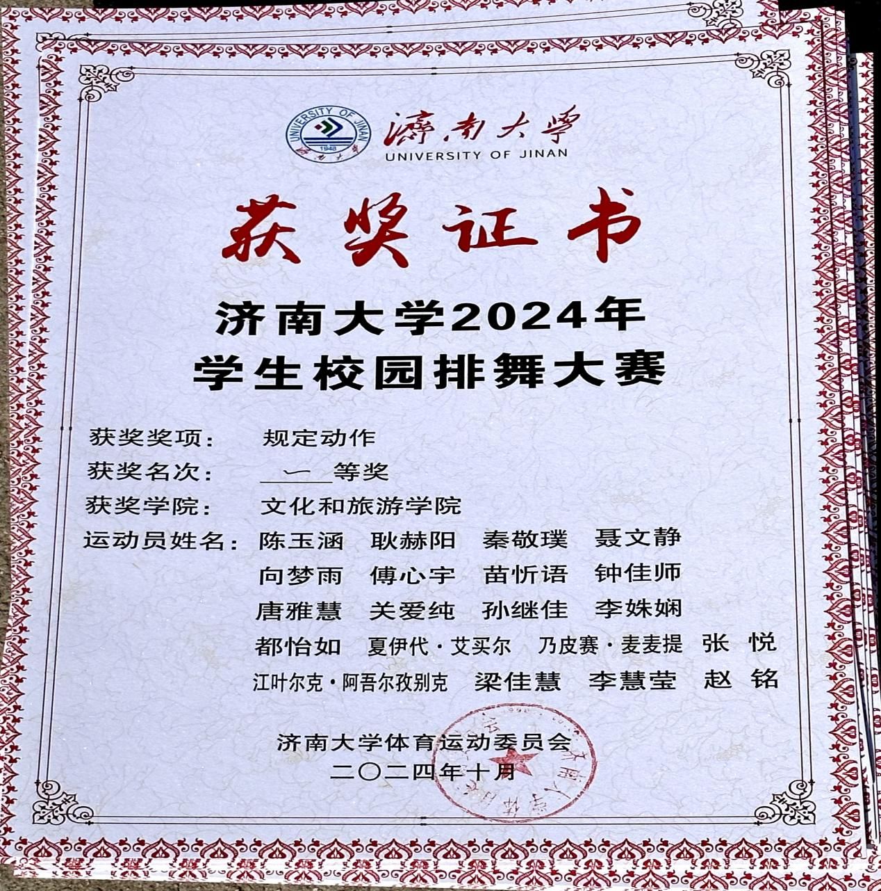 排舞队凭借出色表现,取得规定动作一等奖和自选动作二等奖的好成绩。