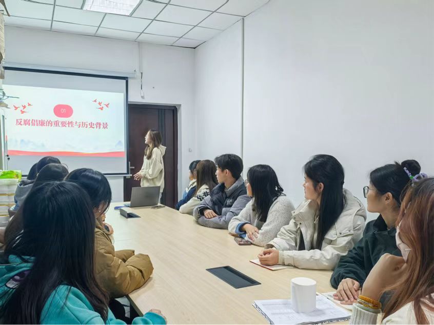 在文旅楼104教室开展以“筑牢反腐防线,构建清廉家园”为主题的青马工程培训课程。