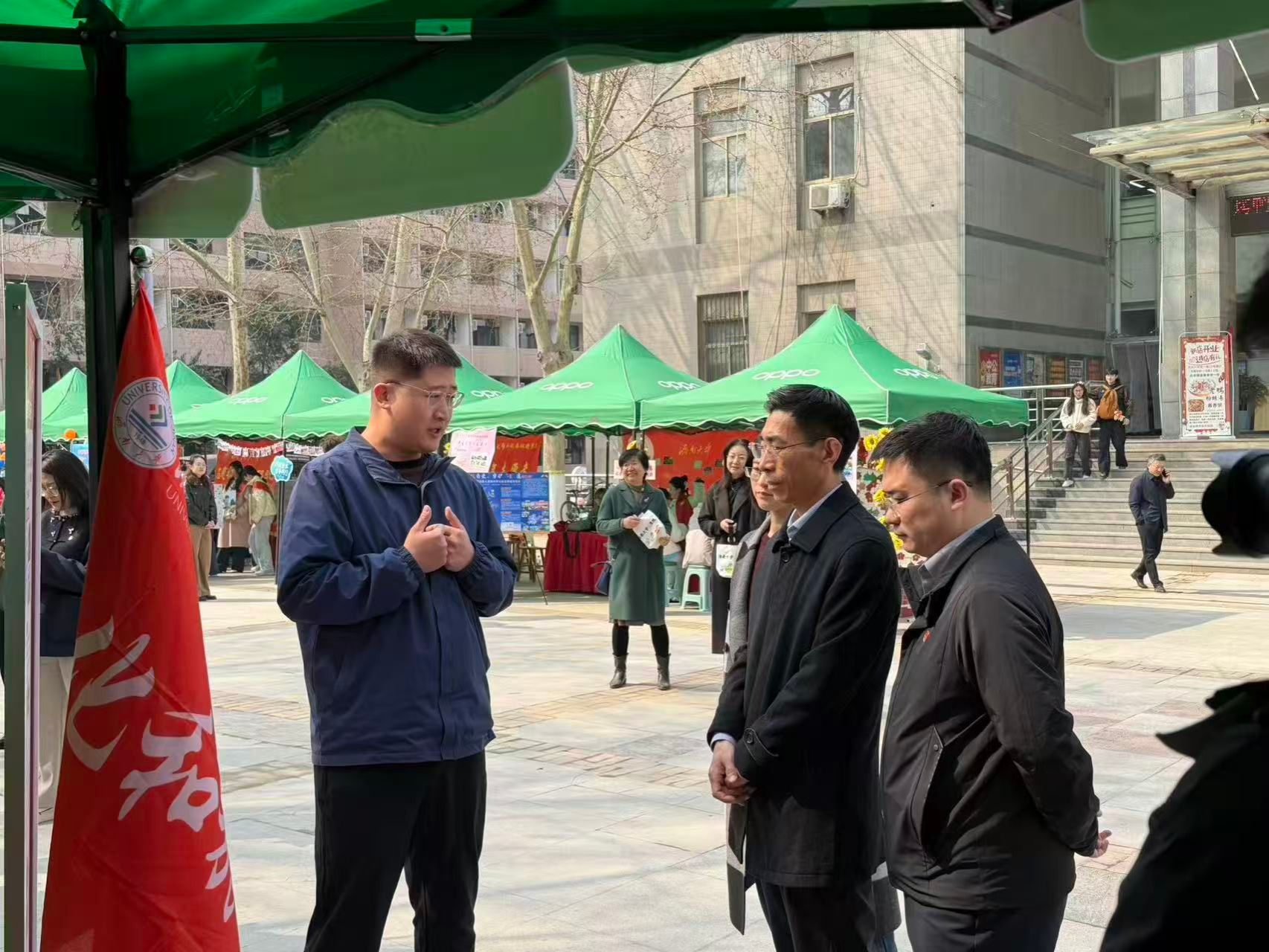 为提升现场互动性与参与感,学院特设“踢毽子挑战”趣味游戏,吸引众多师生踊跃参与。挑战成功的师生可获精美餐具,参与者均可领取学院自主设计、取材于校园风光的定制明信片,在趣味互动中传递温暖心意,让志愿精神更具感染力。活动期间,学校领导莅临学院展位,与志愿者亲切交流并参与互动游戏,对学院志愿服务工作给予充分肯定与鼓励。