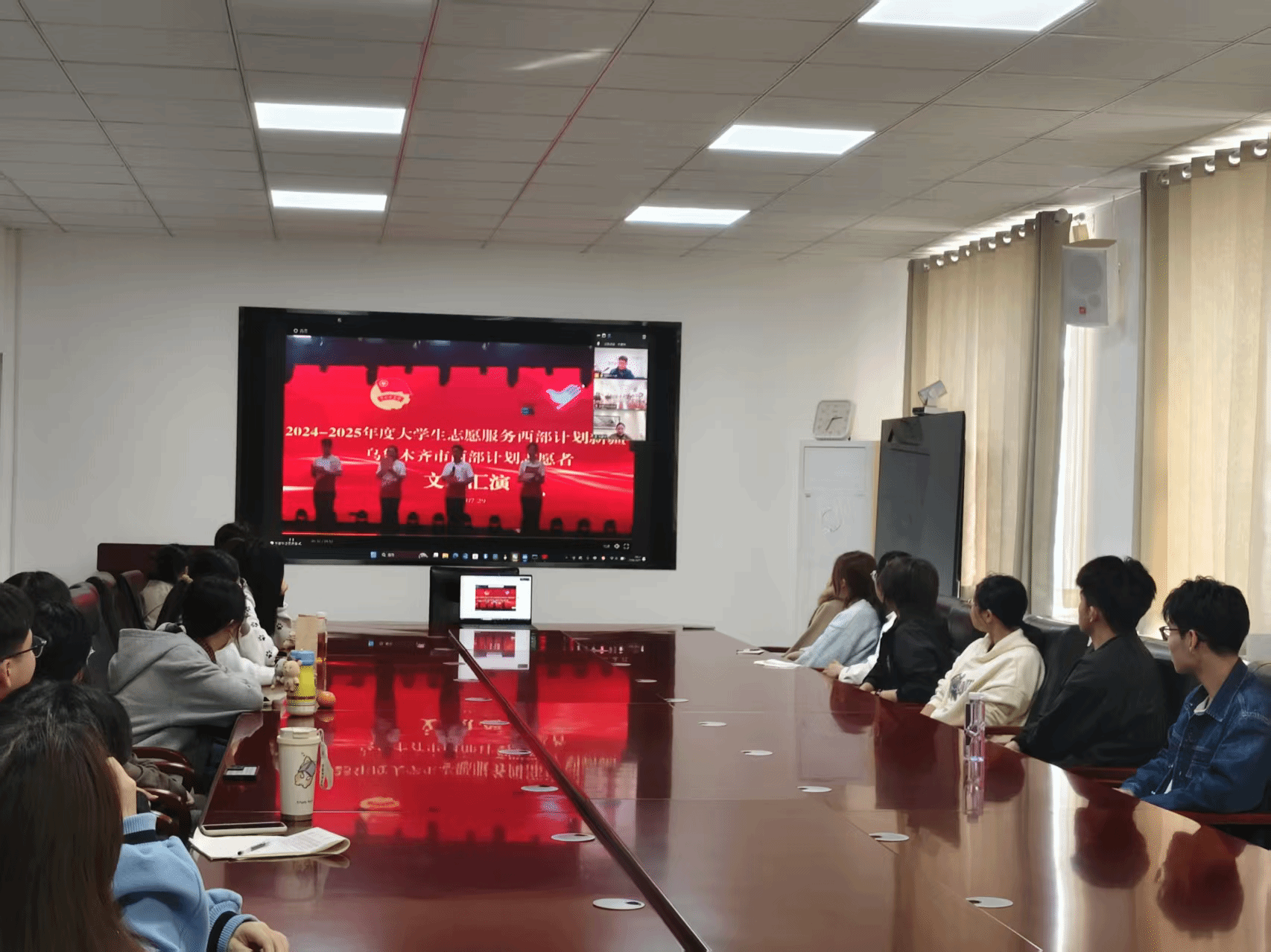 于3月25日在文旅楼212会议室举办了西部计划宣讲活动。活动采用线上线下相结合的方式,特邀24届毕业生、西部计划优秀志愿者牛家华学姐进行视频连线分享,由赵军老师主持,为同学们带来了一场生动而深刻的“云端”思政课。