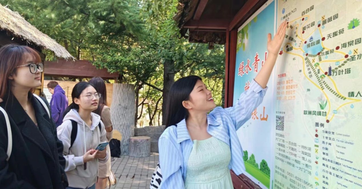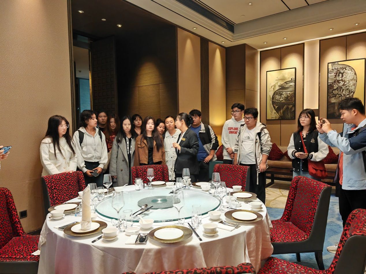 在红叶谷生态文化旅游区,学生调研了景区旅游资源的分布、功能分区与线路设计;在山东博物馆,学生现场观摩了专业导游讲解技能,领略了山东的历史文化和地域特色;在芙蓉街-百花洲历史文化街区,学生考察了芙蓉街、王府池子、曲水亭街及百花洲等景点,对文化传承与保护、业态布局及社区旅游发展进行了全面了解;在济南绿地美利亚酒店和鲁能希尔顿酒店,学生通过实地参观、交流座谈与现场模拟等途径,学习了酒店的禁漫天堂、服务设施配置、各岗位的工作内容及服务要点等。