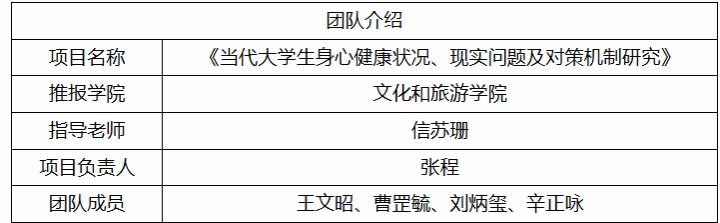习近平总书记指出,“经济要发展,健康要上去。人民群众的获得感、幸福感、安全感都离不开健康”。作品聚焦当代大学生身心健康状况这一社会和高校关注度较高的现实课题,通过质性研究和量化研究有机结合,掌握一手材料,总结现状特征,厘清影响机制,研判对策规律。通过扎实的问卷调研和访谈等,开展科学抽样及数据收集,聚焦大学生体育锻炼、健康行为、社会心态、社会参与等多维度,力求描绘学生面临考研升学压力、就业市场竞争等现实问题时的价值观与心态群像等,力求基于最新动态及作用机制,探讨多部门协同联动、精准发力等对策建议,以期为高校大学生身心健康教育引导工作提供有益参考,助力青年更好成长成才。